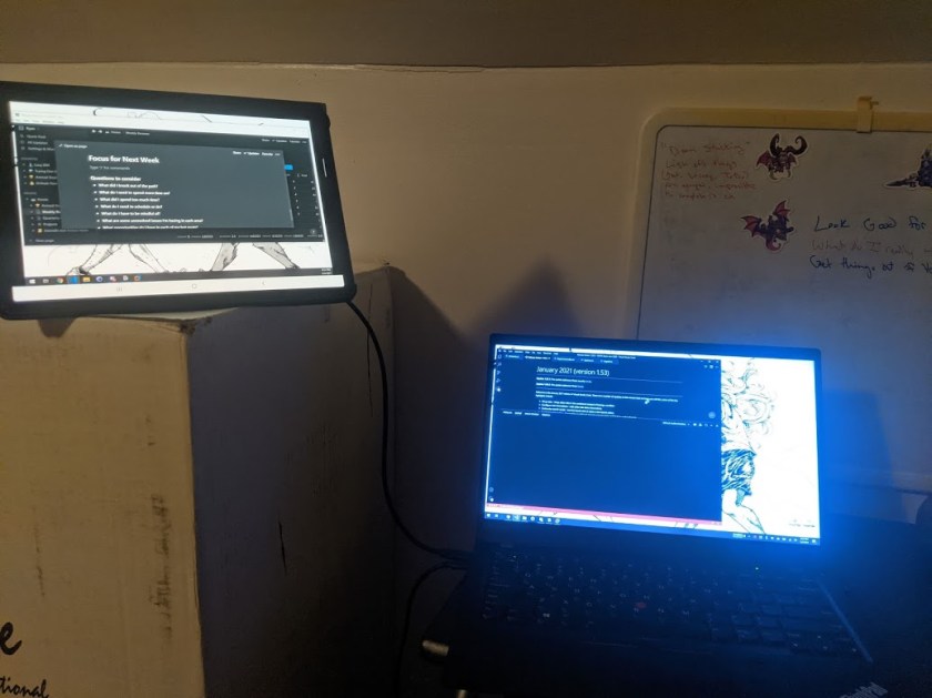 My focus for the early part of this year is to improve my productivity. Because my job has me working on a computer, an easy tool I can use is a second monitor. I’ve actually had the setup available for some time but haven’t had the push to get it working on a daily basis.